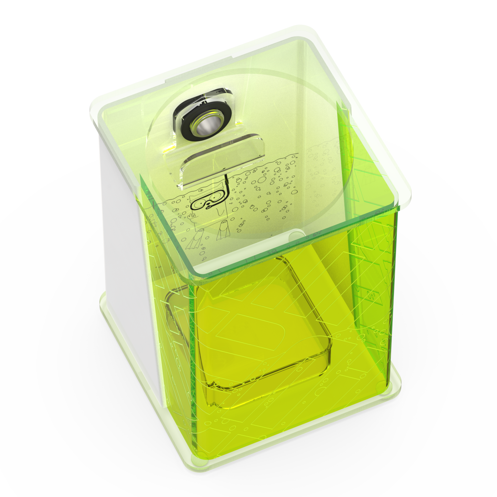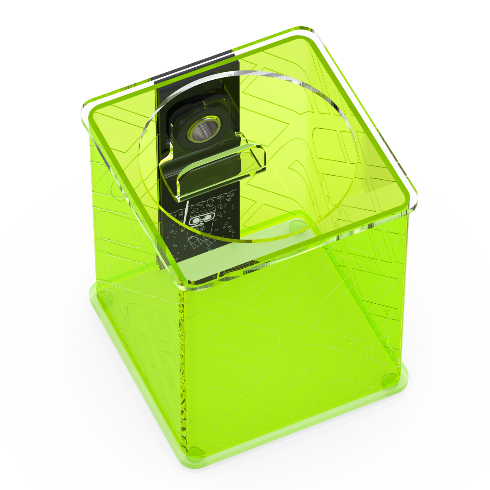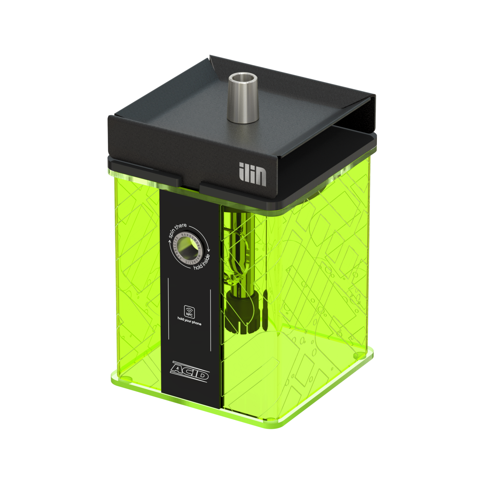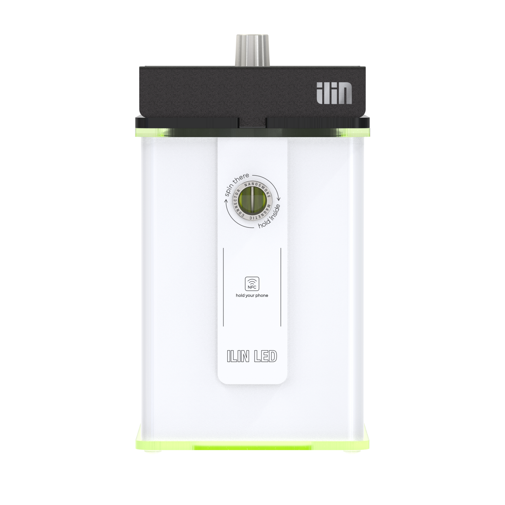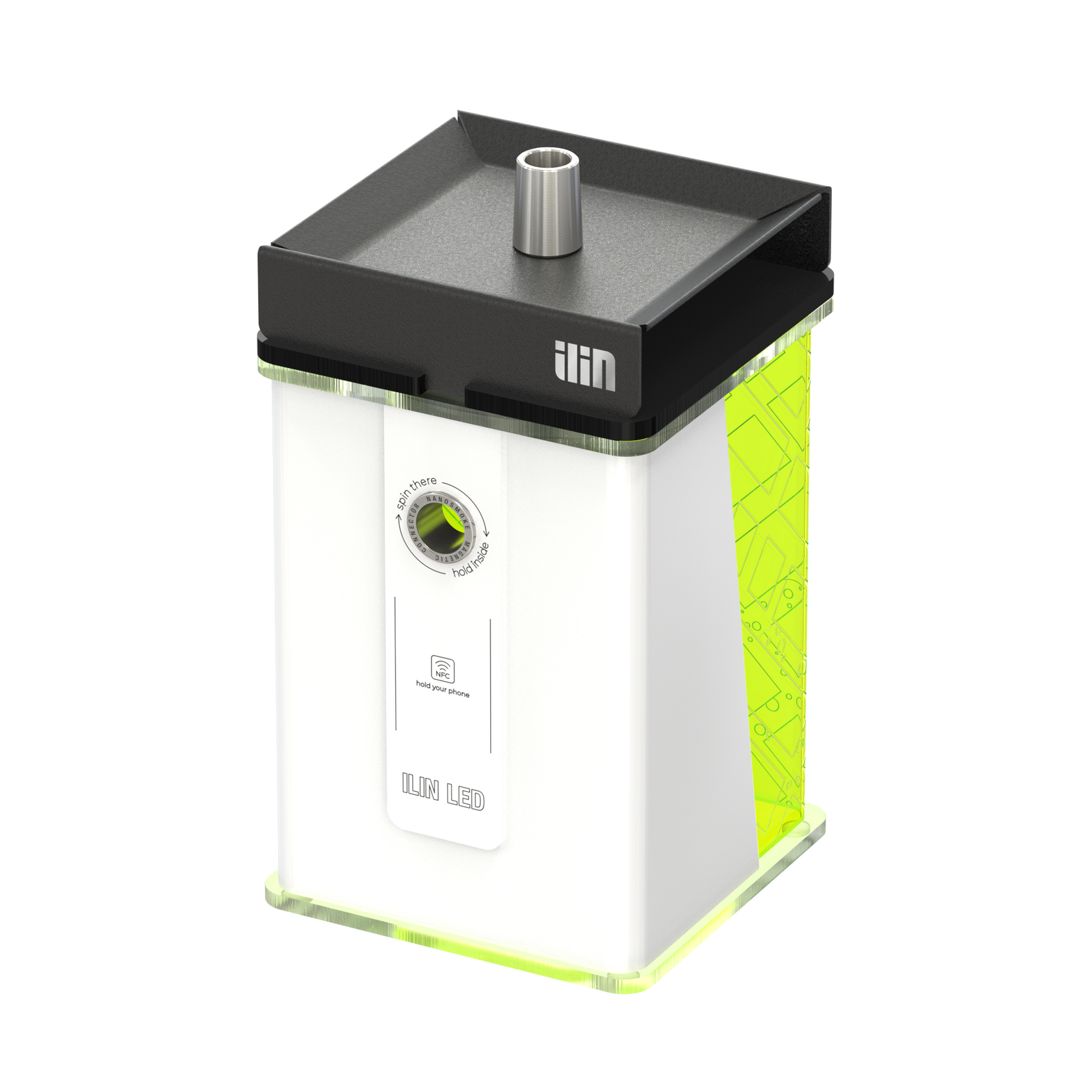 ILIN LED — флагманская модель 2022 года. Корпус выполнен из оргстекла (plexiglass) белого цвета с кислотно-зелеными вставками. Pro-модуль сделан из нержавеющей стали (AISI 304) и имеет вертикальную продувку.