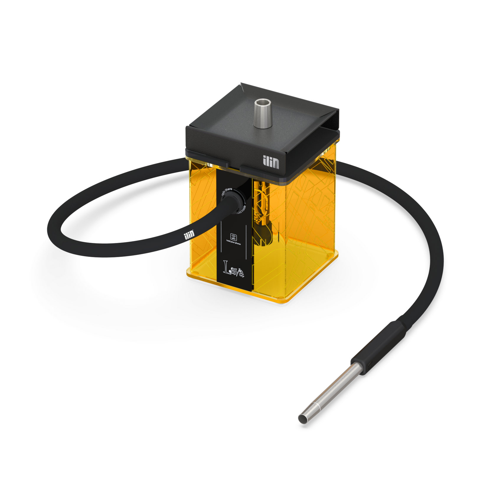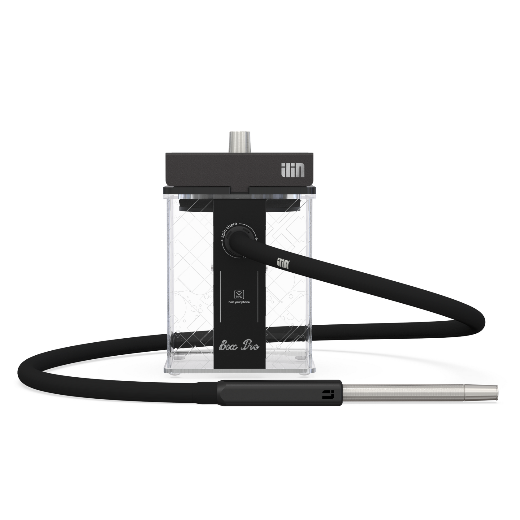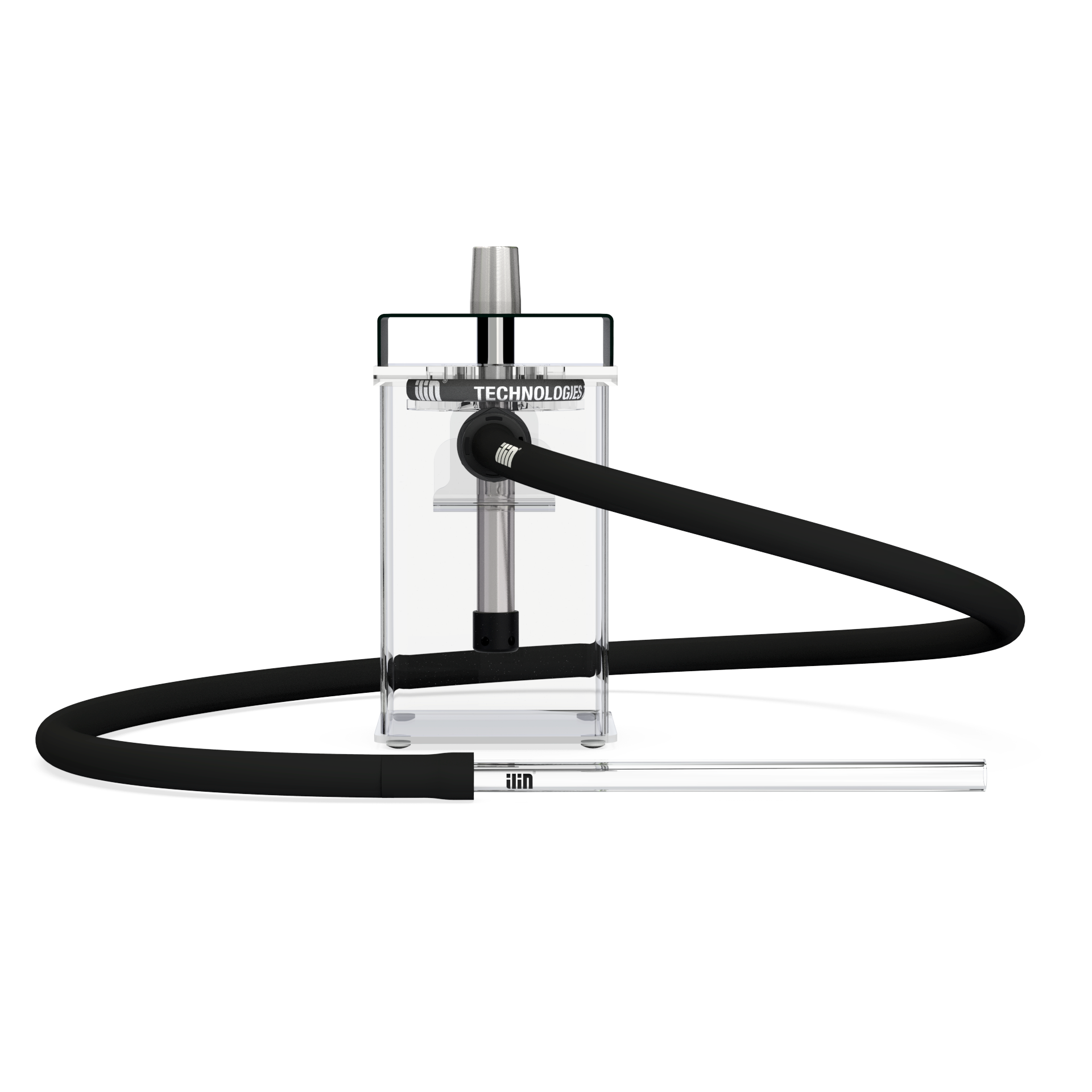 Кальян ILIN: Колба, Шахта и блюдце из нержавеющей стали, Уплотнитель для чаши, Шланг, Магнитный коннектор, Мундштук ILIN, Антисплеш (брызговик).