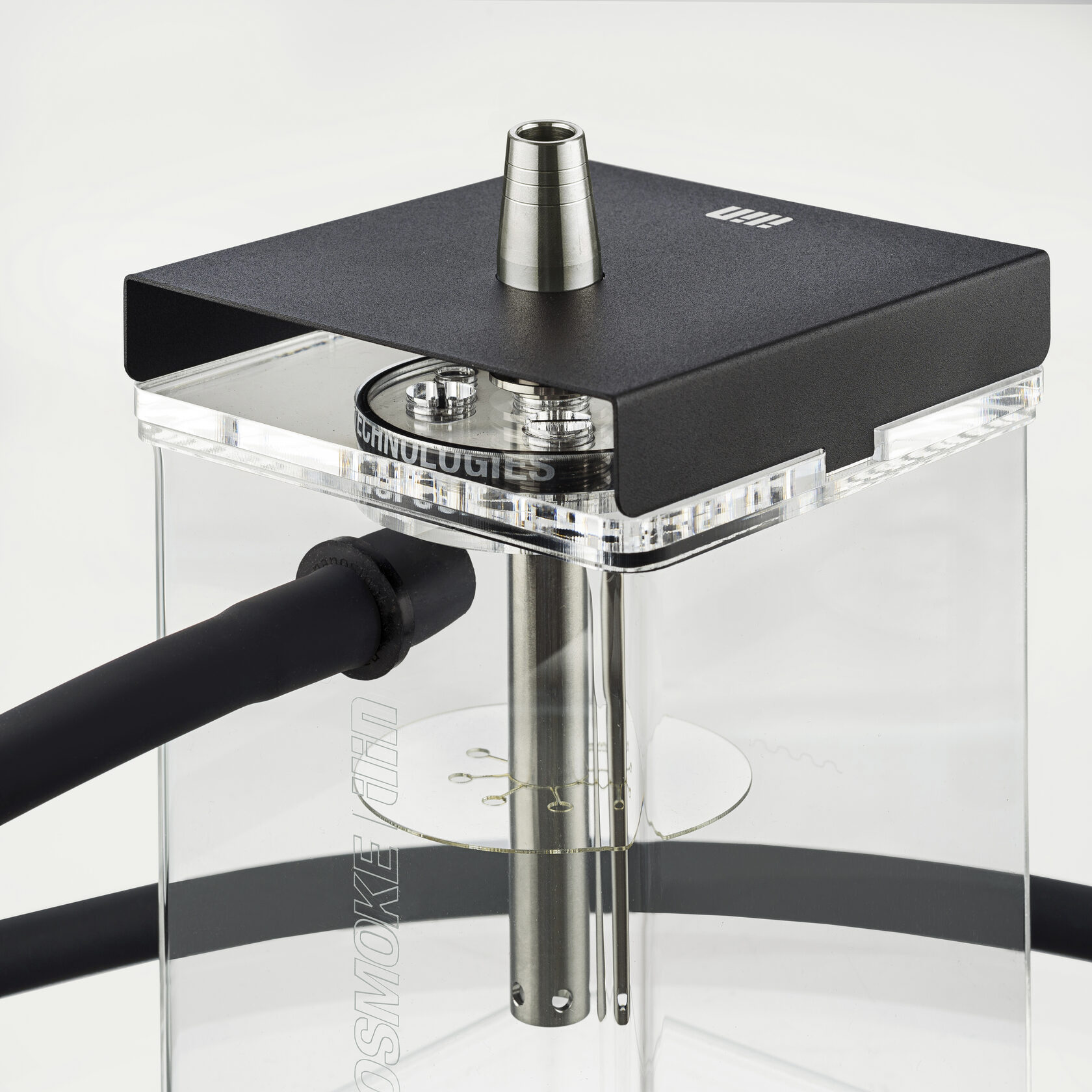 Вовнутрь корпуса пакуется мундштук и шланг, что делает его самым компактным. Его используют как девайс для путешествий или на каждый день. Он разрешен для использования у бассейна, потому что не бьется и не оставляет осколков. К этой модели подходит дополнительный pro-модуль, с ним вы получите шахту из нержавеющей стали и блюдце, а так же возможность подключения любой чашки стороннего производителя. В комплект уже входит шланг с мундштуком, чашка силиконовая и калауд для углей, чтобы не возиться с фольгой.